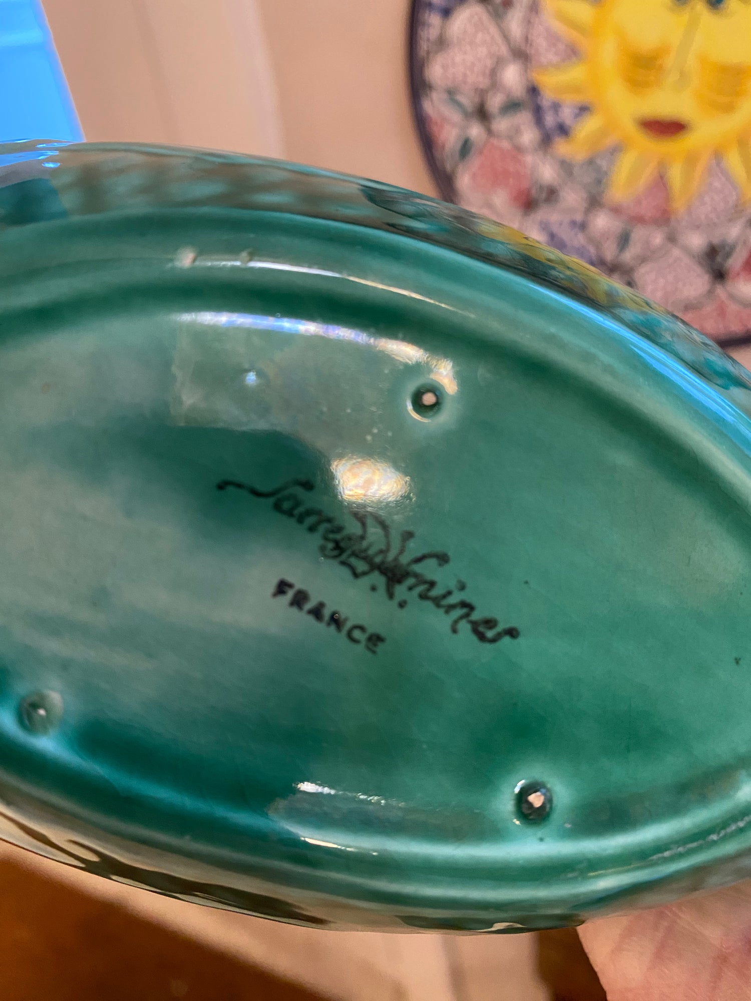 Smuk fiskekande til sovs fra franske Sarreguemines. Flot stand.